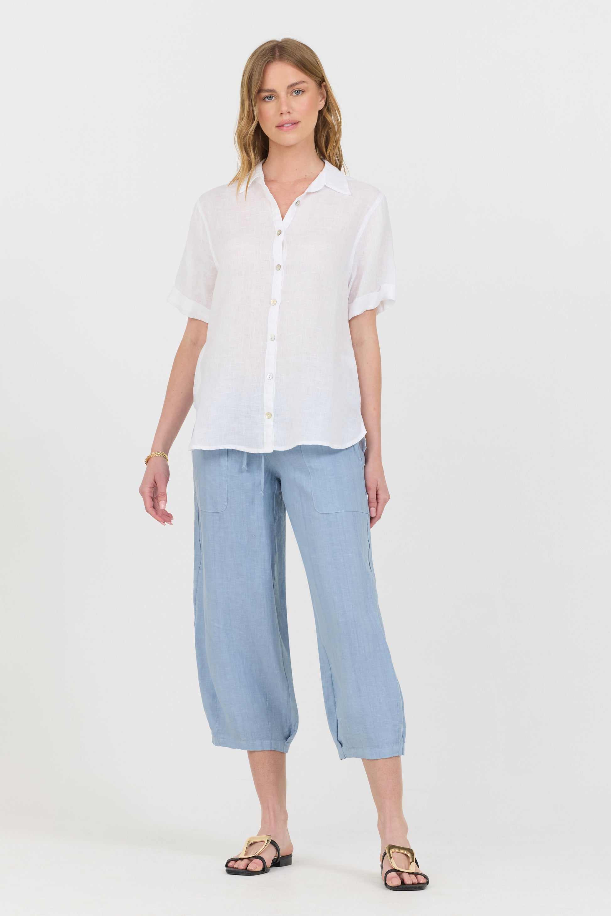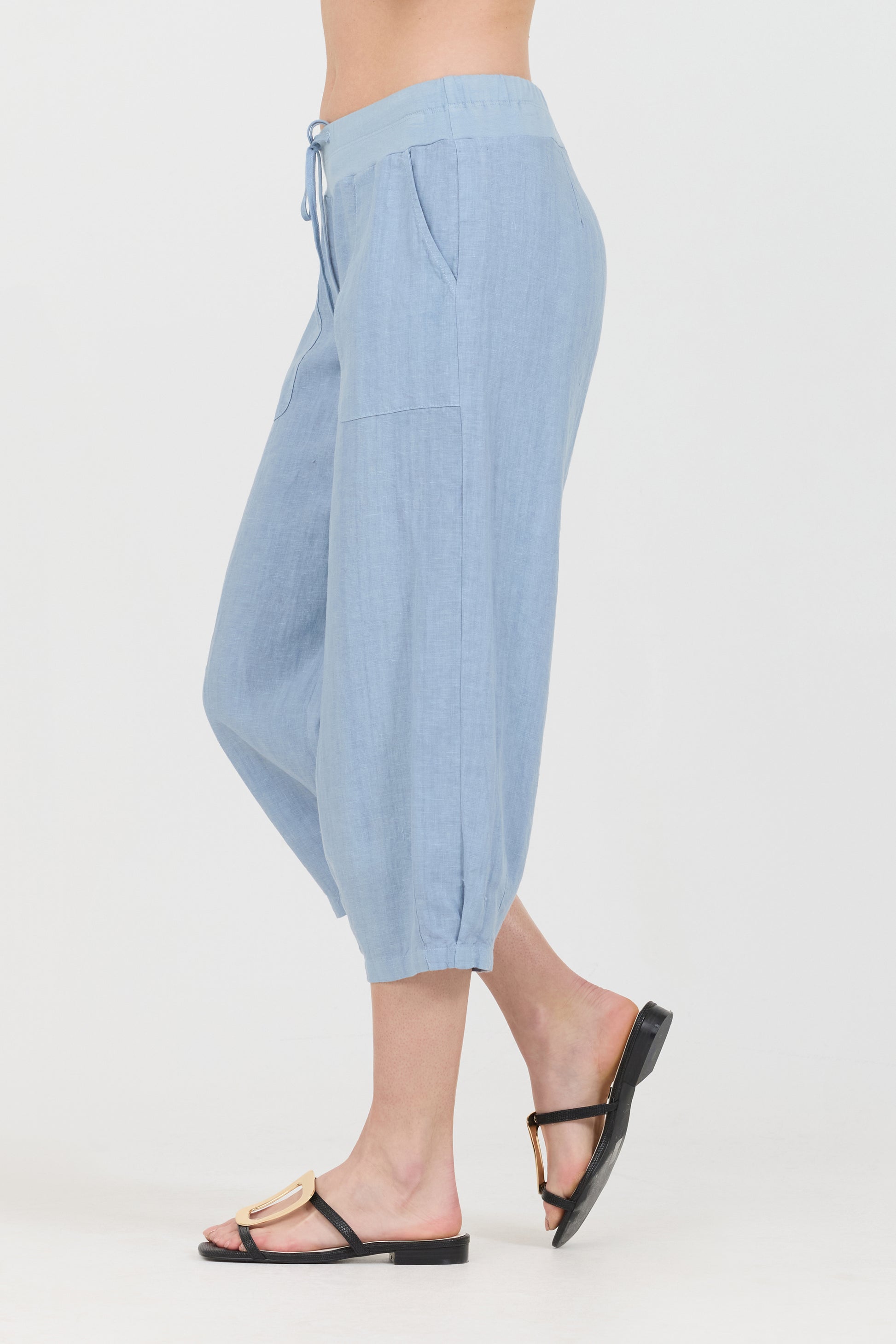 These summer-ready cropped pants are made with your comfort in mind, they feature a drawstring waistband and two side pockets. Breathable and lightweight made with 100% linen.