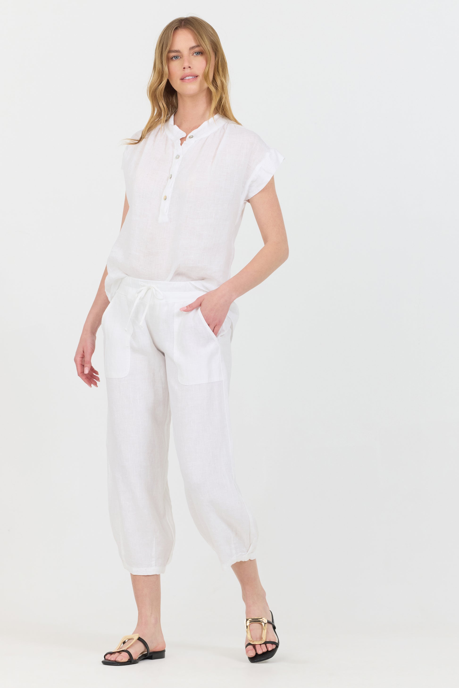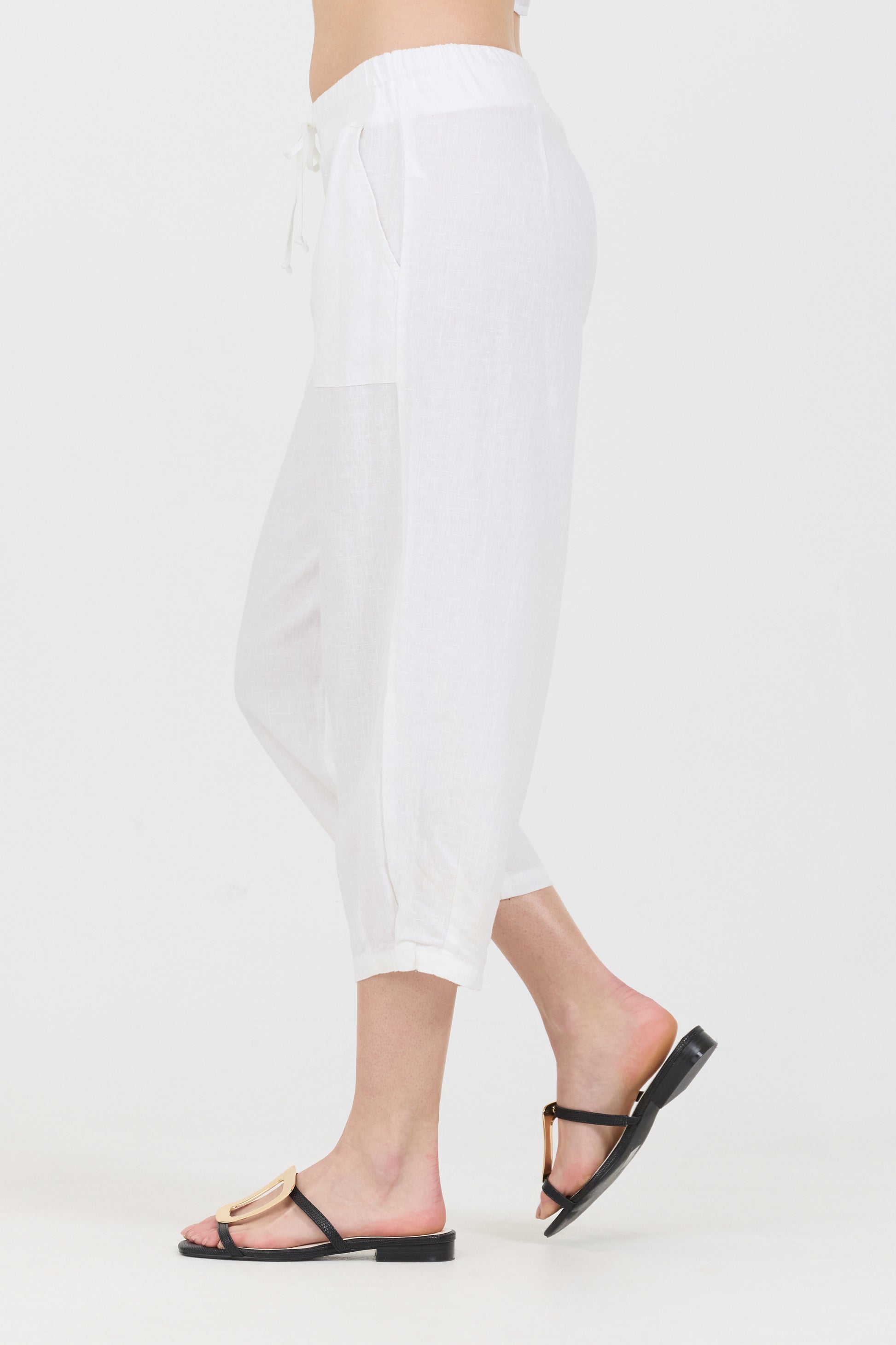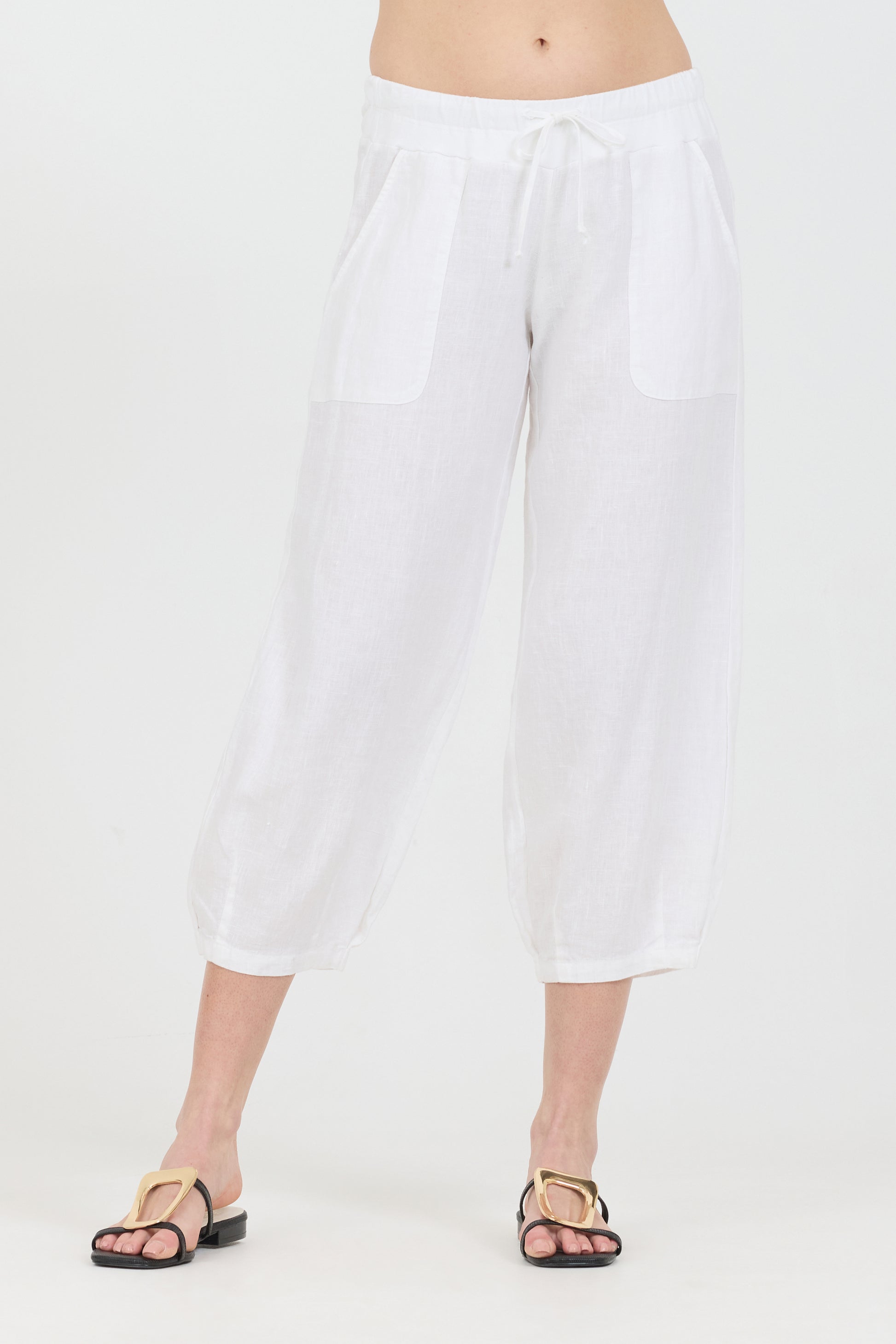 These summer-ready cropped pants are made with your comfort in mind, they feature a drawstring waistband and two side pockets. Breathable and lightweight made with 100% linen.